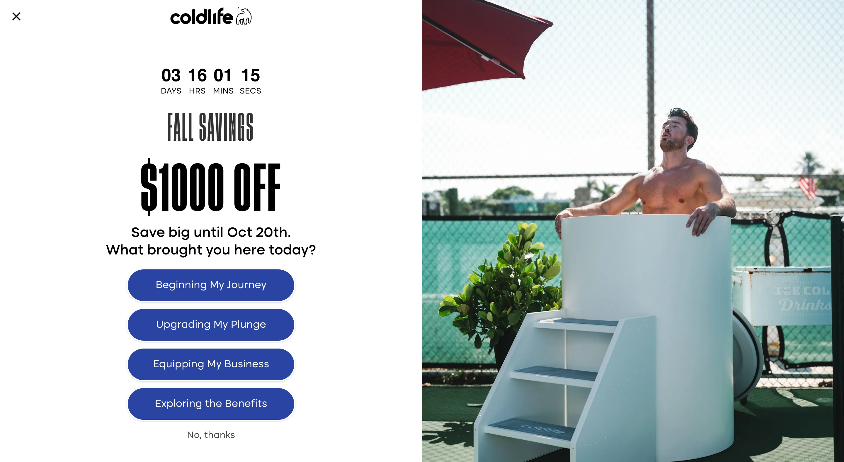 Full-screen popups work best for top-of-funnel email capture, Black Friday early access list, giveaway announcements, and promoting loyalty programs. Our data suggests that using them mid-funnel (cart page, for example), reduced conversions by 18% on average.