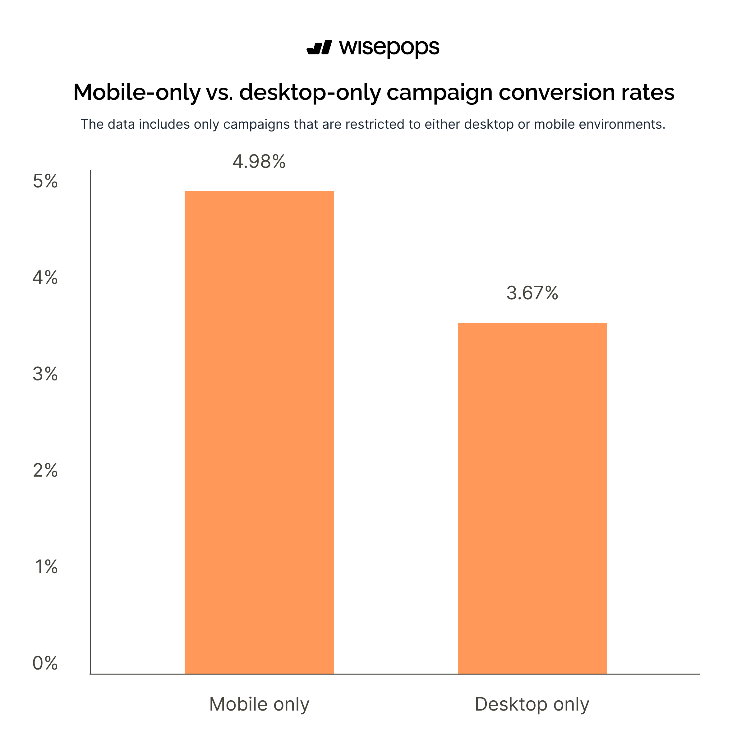 Mobile popups convert at 4.98% compared to desktop popups at 3.67% in 2026, making mobile popups 36% more effective than their desktop counterparts.