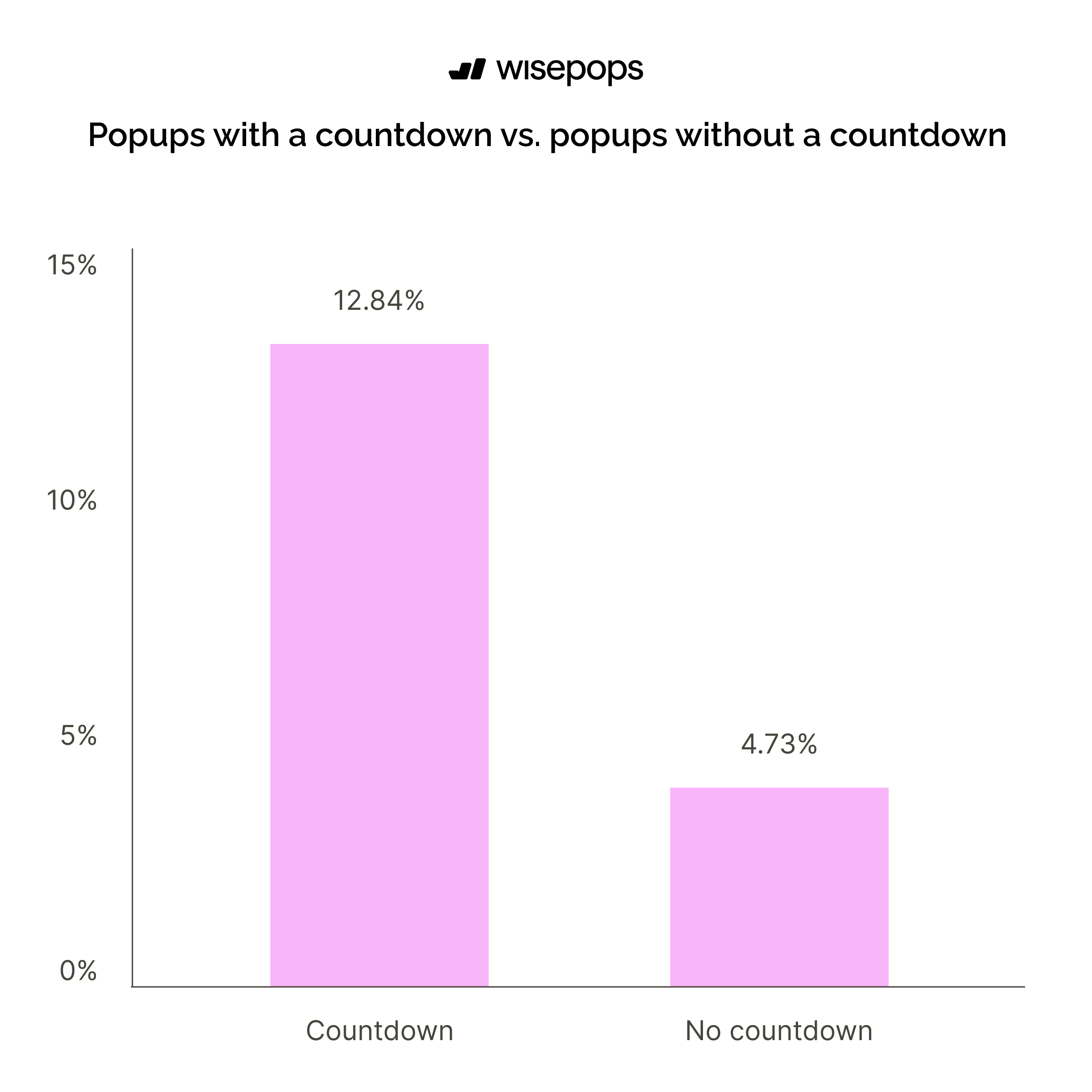 Popups with countdown timers achieve a 12.84% conversion rate, which is 171% higher than popups without countdowns at 4.73%.