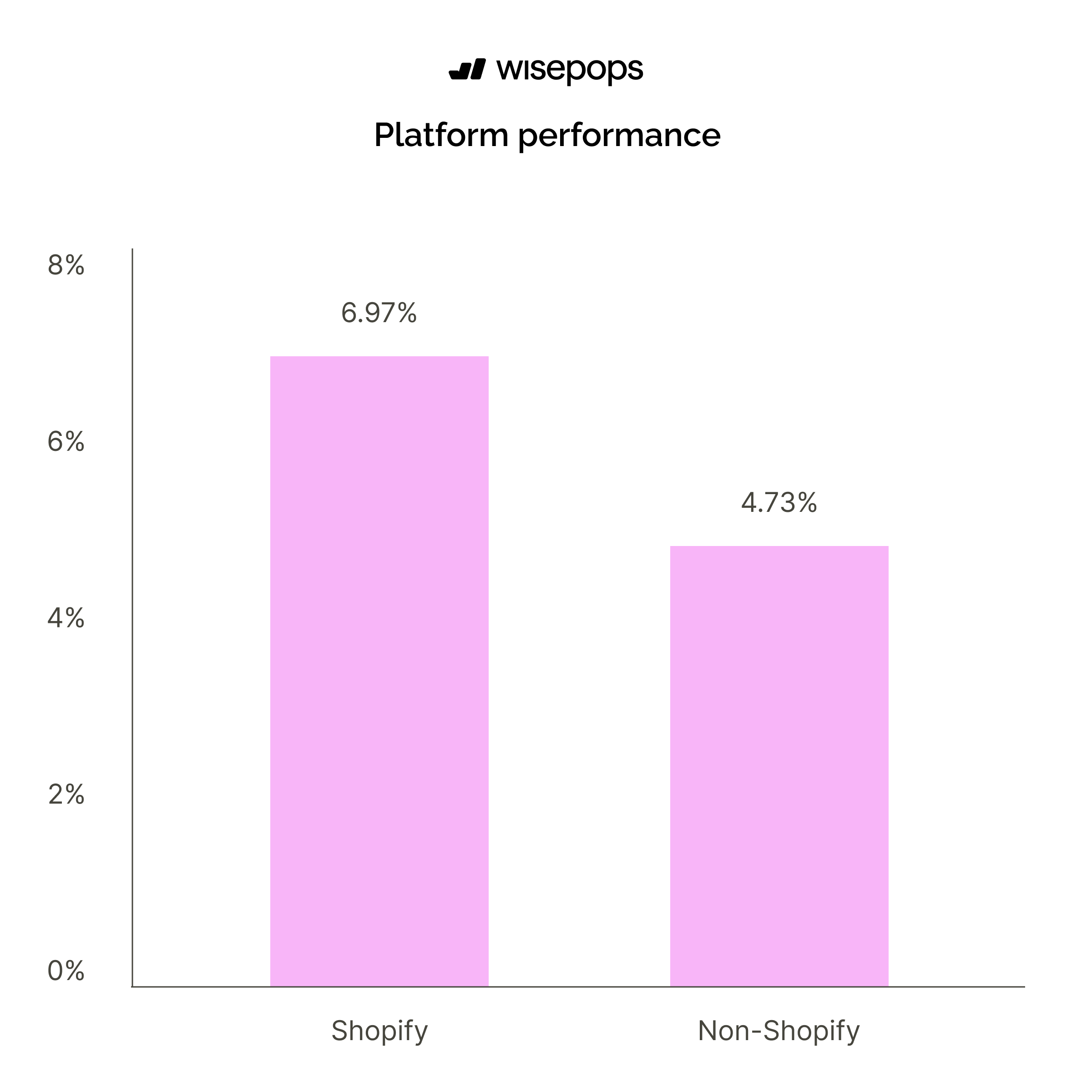 Popups on Shopify stores achieve a 6.97% conversion rate, outperforming popups on non-Shopify platforms at 4.73%.