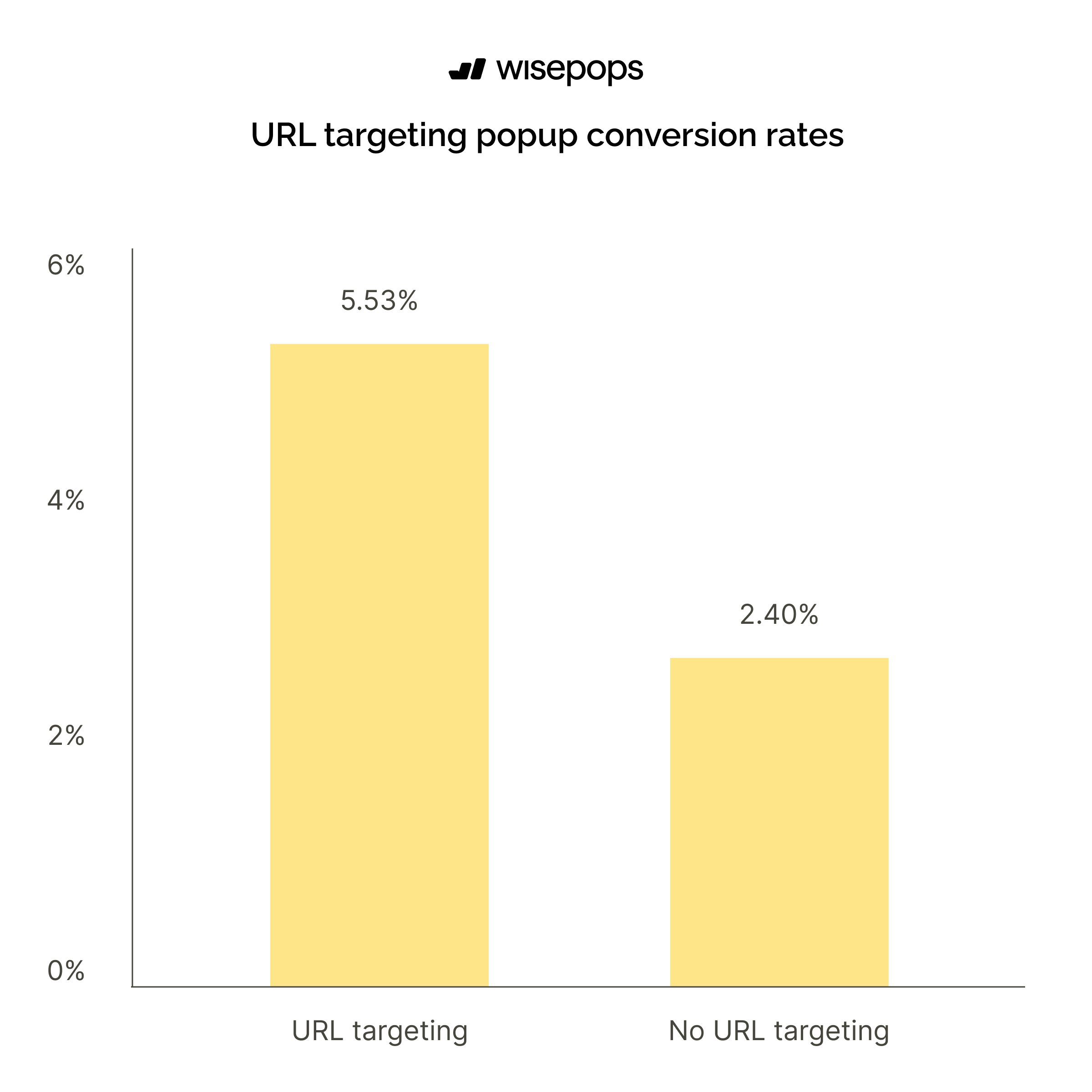 Popups with URL targeting achieve a 5.53% conversion rate, which is 130% higher than popups without URL targeting at 2.40%.
