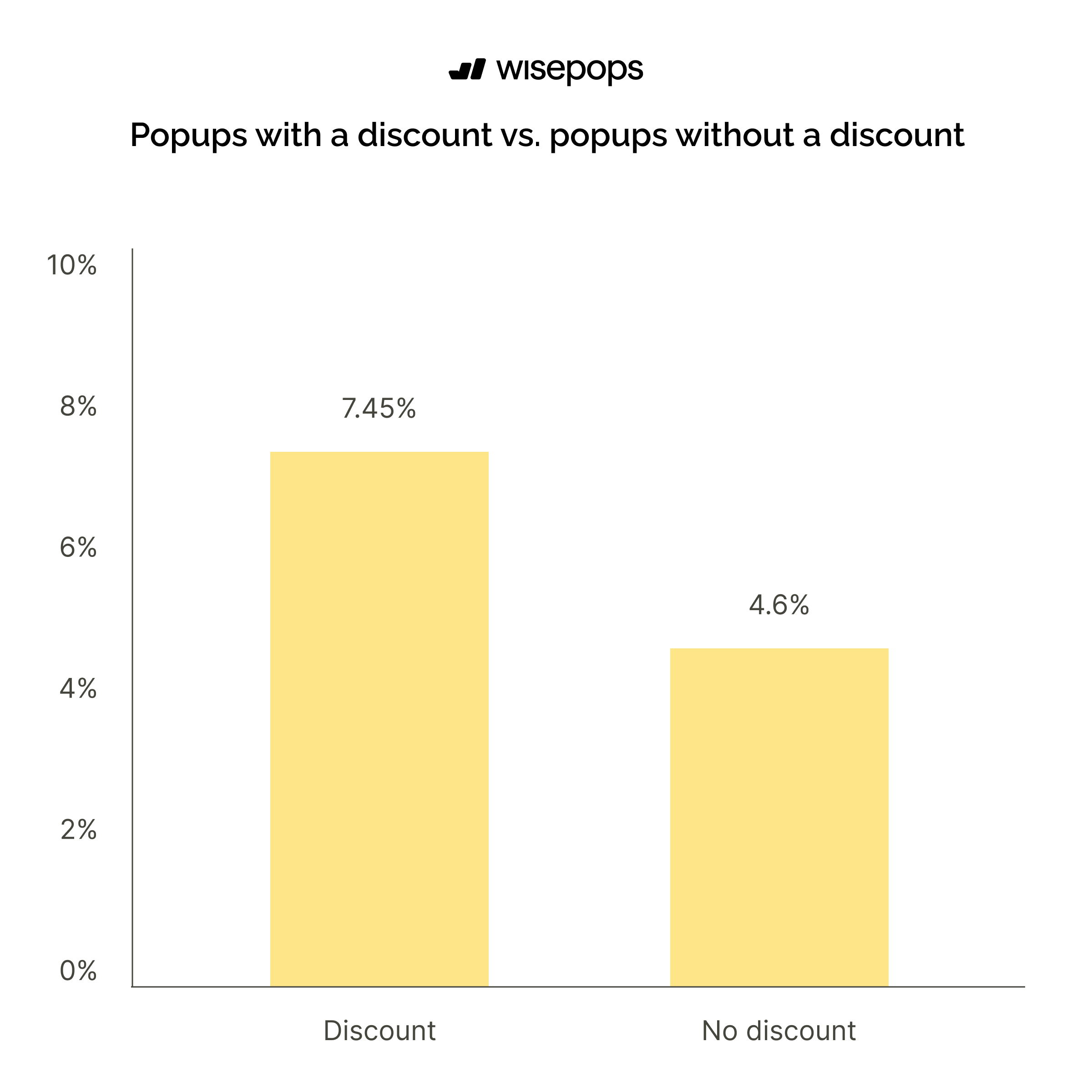 Popups offering discounts achieve a 7.45% conversion rate, which is 62% higher than popups without discounts at 4.60%.