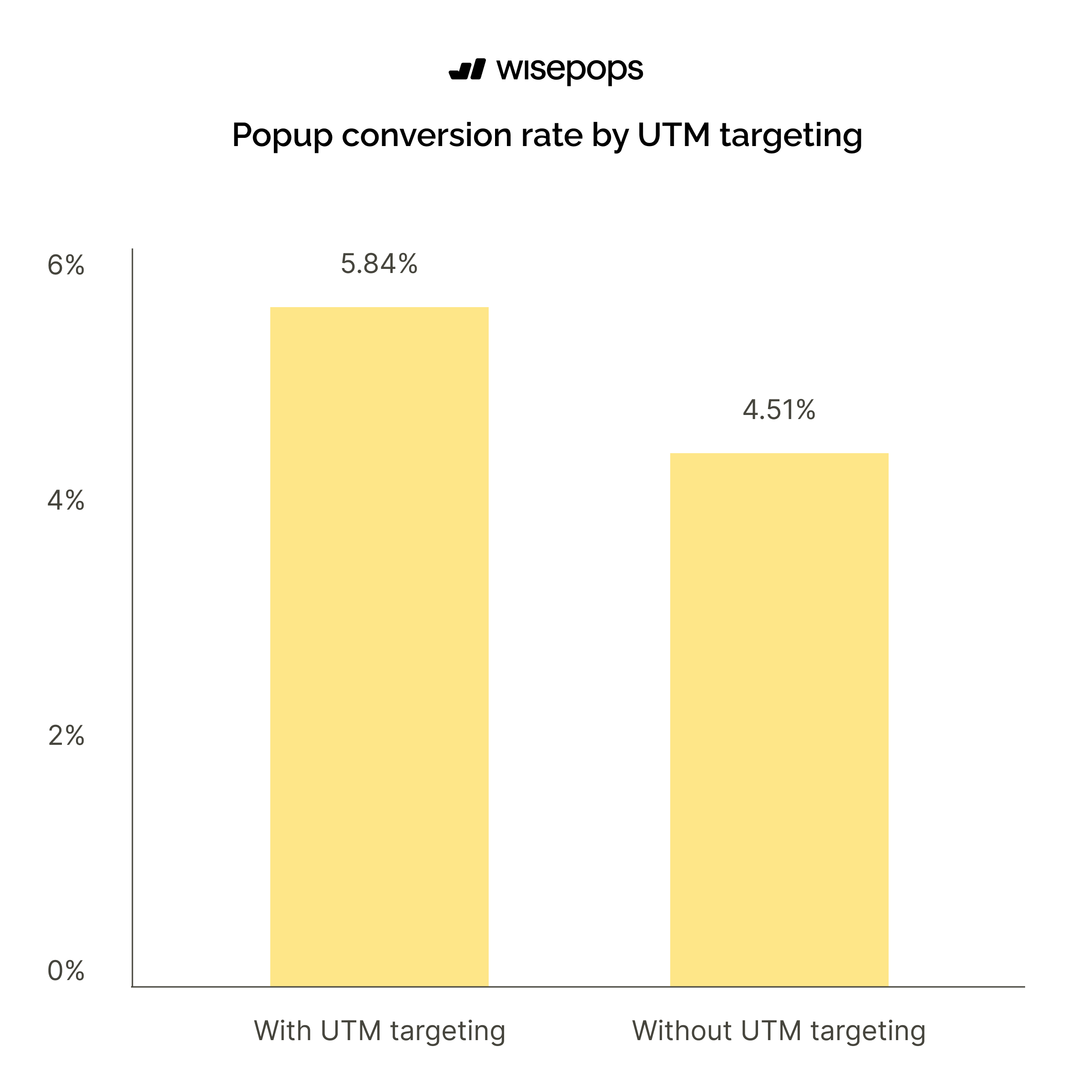 Popups using UTM targeting achieve a 5.84% conversion rate compared to 4.51% for popups without UTM targeting.