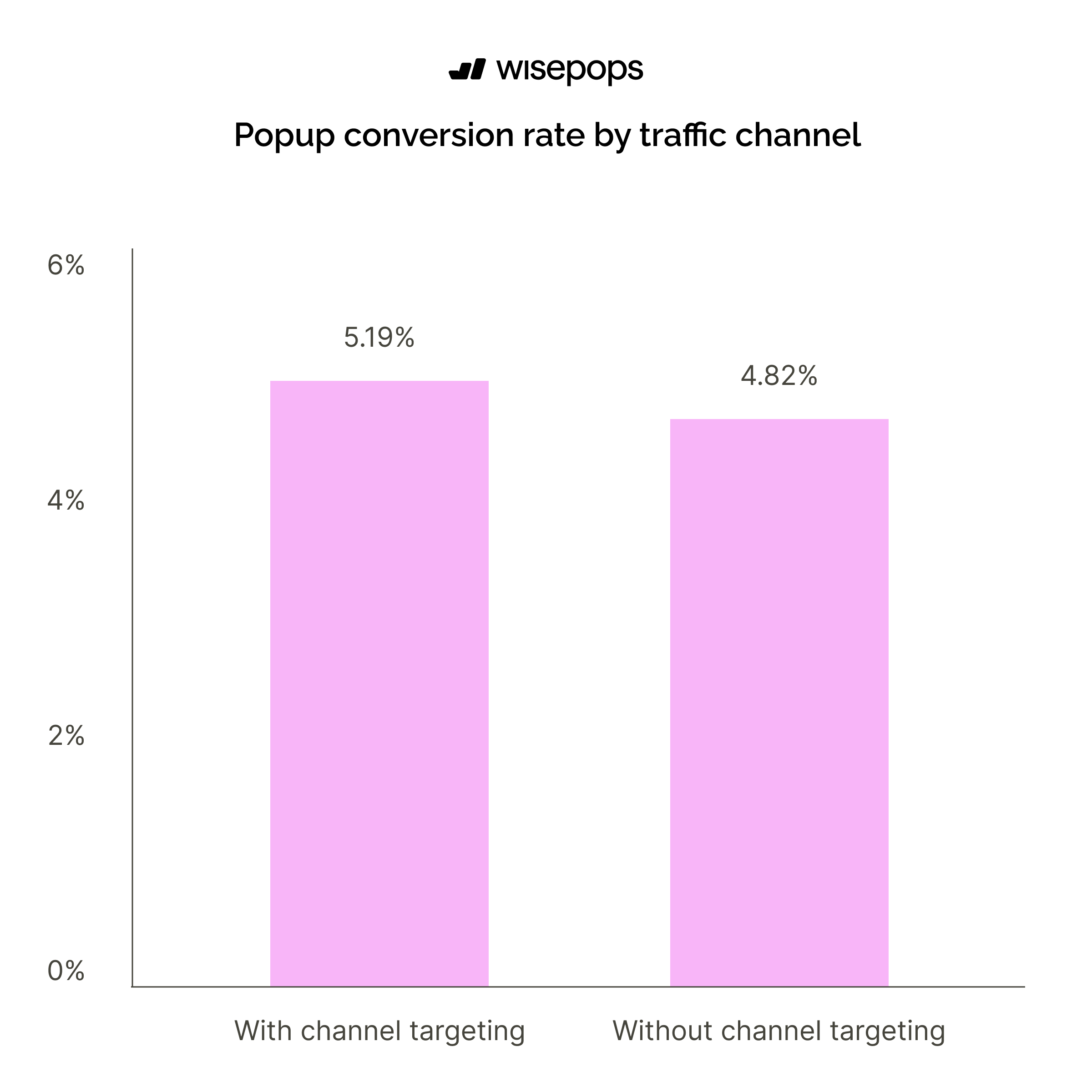 Popups using traffic source targeting achieve a 5.19% conversion rate compared to 4.82% for popups without channel targeting.